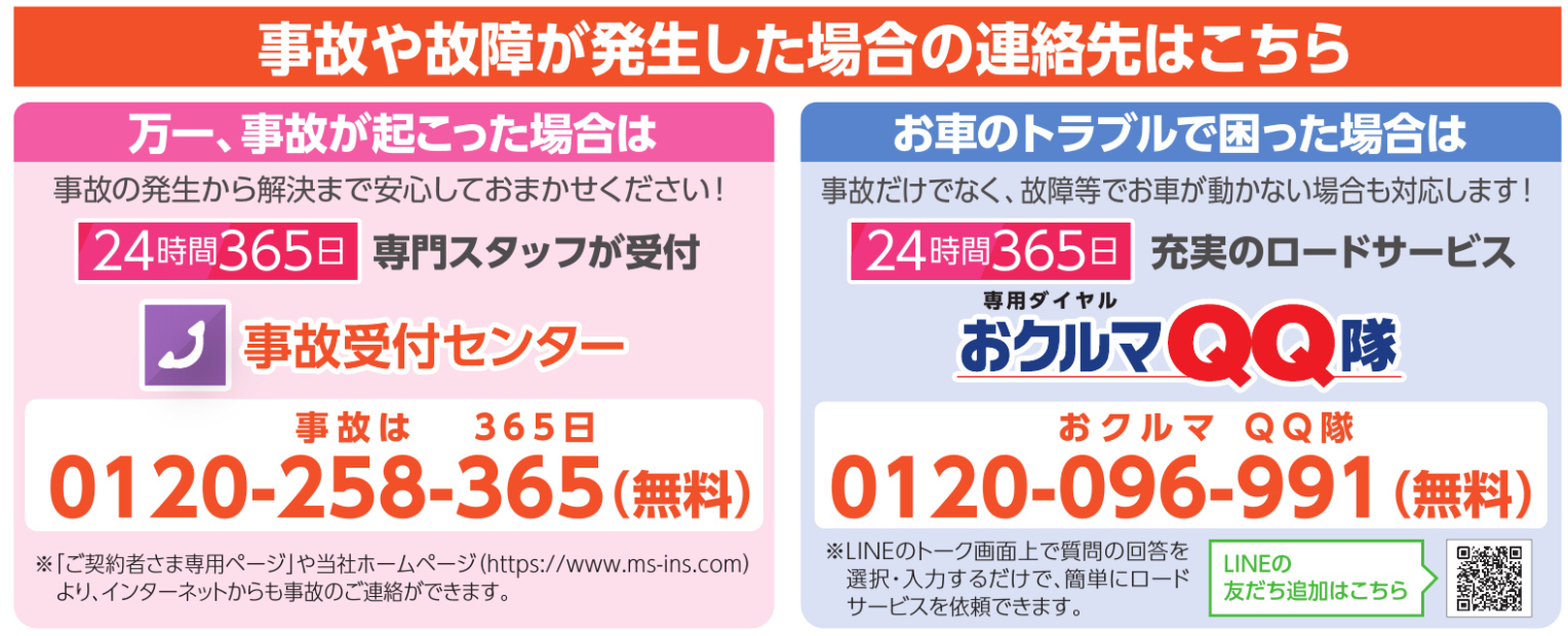 なお、休業期間中の事故等のご連絡につきましては、営業担当者の携帯または下記のフリーダイヤルにご連絡下さい。